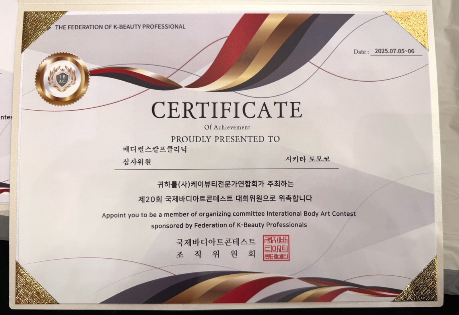 このたび、韓国・釜山で開催された「インターナショナルボディアートコンテスト」にて、メディカルスカルプ部門のグローバル審査員として参加させていただきました。